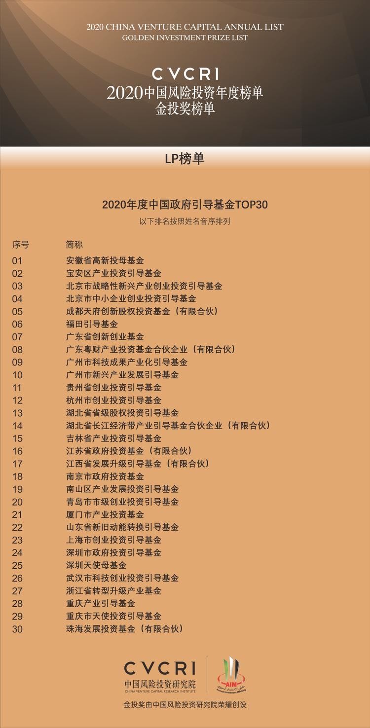 (图一为“2020年度中国政府引导基金TOP30”榜单)