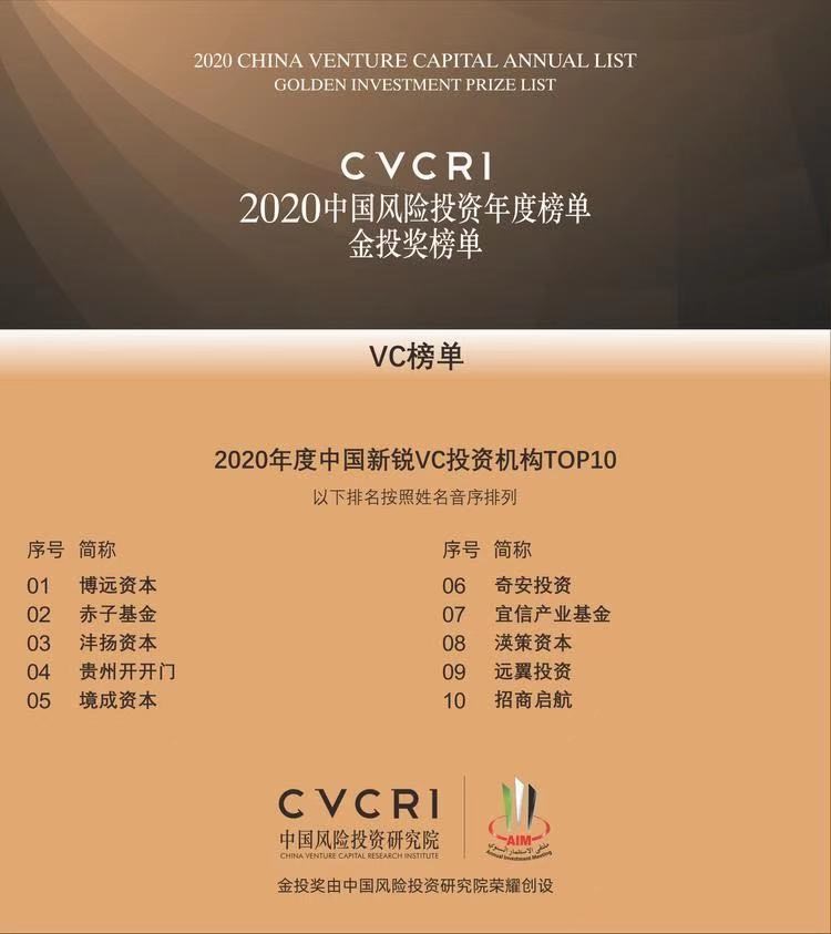 (图二为“2020年度中国新锐VC投资机构TOP10”榜单)