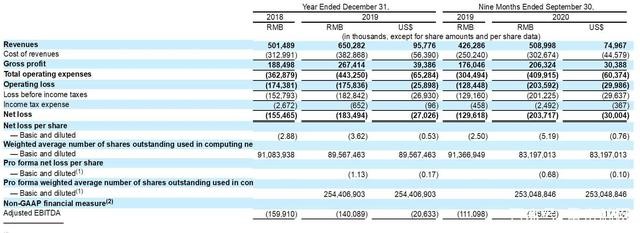 (图一为容联的主要产品) 容联是中国最大的多产品云通讯服务商,总部位于北京,在贵阳、上海、广州、深圳、武汉、成都、杭州等地设有分支机构,拥有员工超1000人。 容联2018年、2019年营收分别为5亿元、6.5亿元、;容联2020年前9个月营收为5.09亿元,上年同期营收为4.26亿元。 根据容联往年营收数据调研,每年第四季度都会达到营收峰值,可预估的是,容联2020年第四季度营收会超过2亿元,全年营收将超过7亿元。