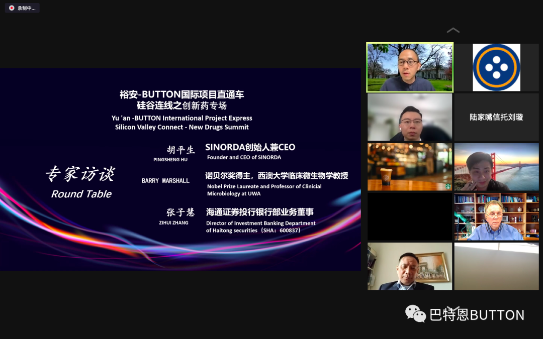 北京时间3月16日14:30(美国西部时间3月15日23:30),由上海裕安和美国BUTTON公司主办的裕安·BUTTON国际项目直通车(第二期)硅谷连线之创新药专场活动(下文简称“活动”)在中国上海、美国旧金山、瑞典斯德哥尔摩、澳大利亚珀斯连线举办。