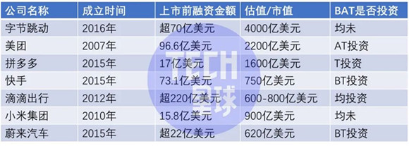 最典型的是字节跳动和小米集团,他们不是BAT任何一家的代理人,也未获得任何一家的投资。