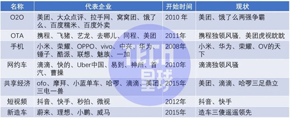 美团和阿里在本地生活的巷战连绵不绝,而腾讯和百度纷纷做了自己的短视频直播产品,投资了蔚来汽车的小米自己开始下场造车。
