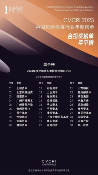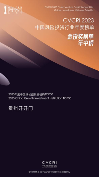 | 贵州开开门荣膺CVCRI“2023年度中国成长型投资机构TOP30” | |
