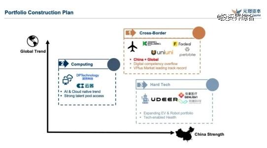 基于此设计和策略,元璟团队将硬科技、计算迭代和跨境创新做为美元投资的三个重点领域,重点关注“什么是中国的强项,什么是世界的趋势,什么是中国+世界的结合”这三个方向来设计投资组合。