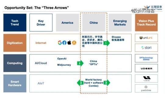 技术浪潮就像是引导投资的三个箭头,在纷繁复杂的全球化投资当中,为我们找到新机会的方向,在元璟资本2023美元投资人年会上,管理合伙人毅然详细讲述了元璟眼中三个箭头的含义: